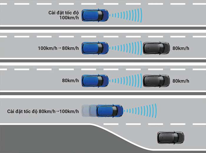 Tự động điều chỉnh khoảng cách với xe phía trước và duy trì tốc độ ổn định, giúp người lái giảm mệt mỏi trong các hành trình dài.
