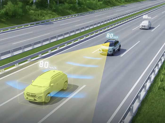 Sử dụng radar sóng milimet và camera đơn để nhận diện xe phía trước, tự động điều chỉnh tốc độ để duy trì khoảng cách an toàn đã cài đặt. Nhờ đó, người lái có thể yên tâm di chuyển trên cao tốc hay trong điều kiện giao thông đông đúc.