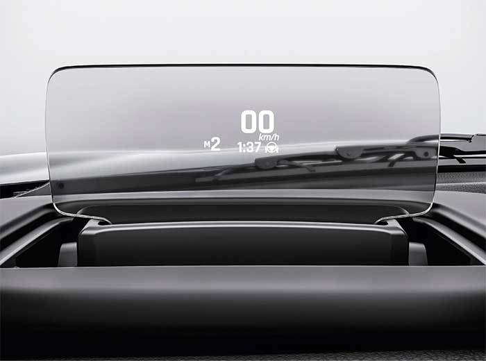 Màn hình hiển thị trên kính lái dạng combiner giúp người lái tập trung hơn khi điều khiển xe, bằng cách chiếu trực tiếp các thông tin hỗ trợ như tốc độ, cảnh báo, hướng đi, dung lượng pin,... trong tầm nhìn phía trước.