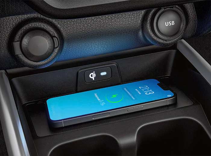 Đi bất cứ đâu mà không lo gián đoạn kết nối. Khay sạc không dây chuẩn Qi được tích hợp ngay phía trước, giúp điện thoại luôn sẵn sàng năng lượng trong suốt hành trình.