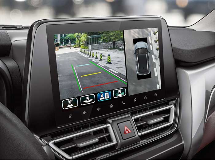 Sử dụng các camera đặt ở phía trước, hai bên và gương chiếu hậu, cung cấp hình ảnh toàn cảnh xung quanh xe theo thời gian thực. Nhờ đó, người lái dễ dàng quan sát chướng ngại vật khi di chuyển vào chỗ đậu, giúp việc đỗ xe trở nên an toàn hơn.